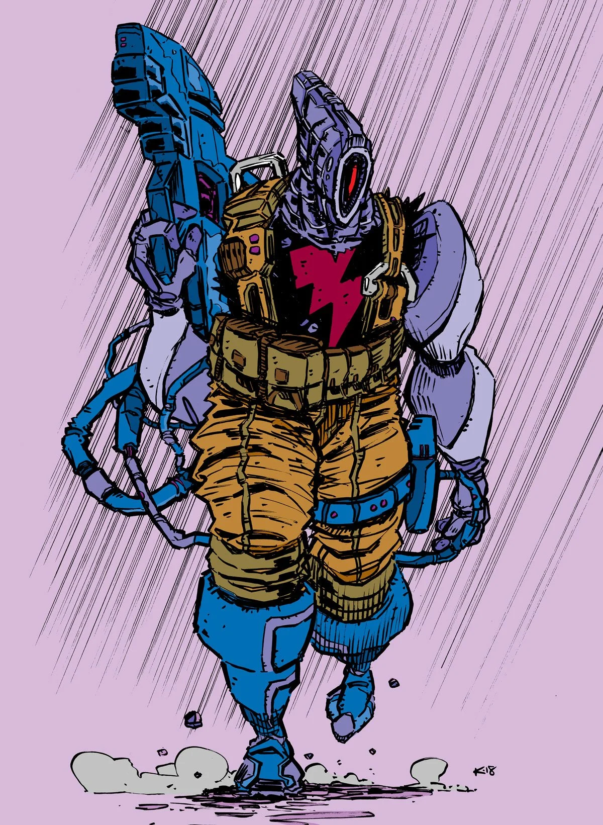 I’d been drawing with the most consistency and determination I could muster, and the fruits of that labor was coming alive on the page. Particularly the drawing of Kimmy, who would be a key member of Jack’s team, and Linus, who’d serve as a rival bounty hunter to Jack’s crew and constant thorn in their collective side. And he had a gigantic laser gun.