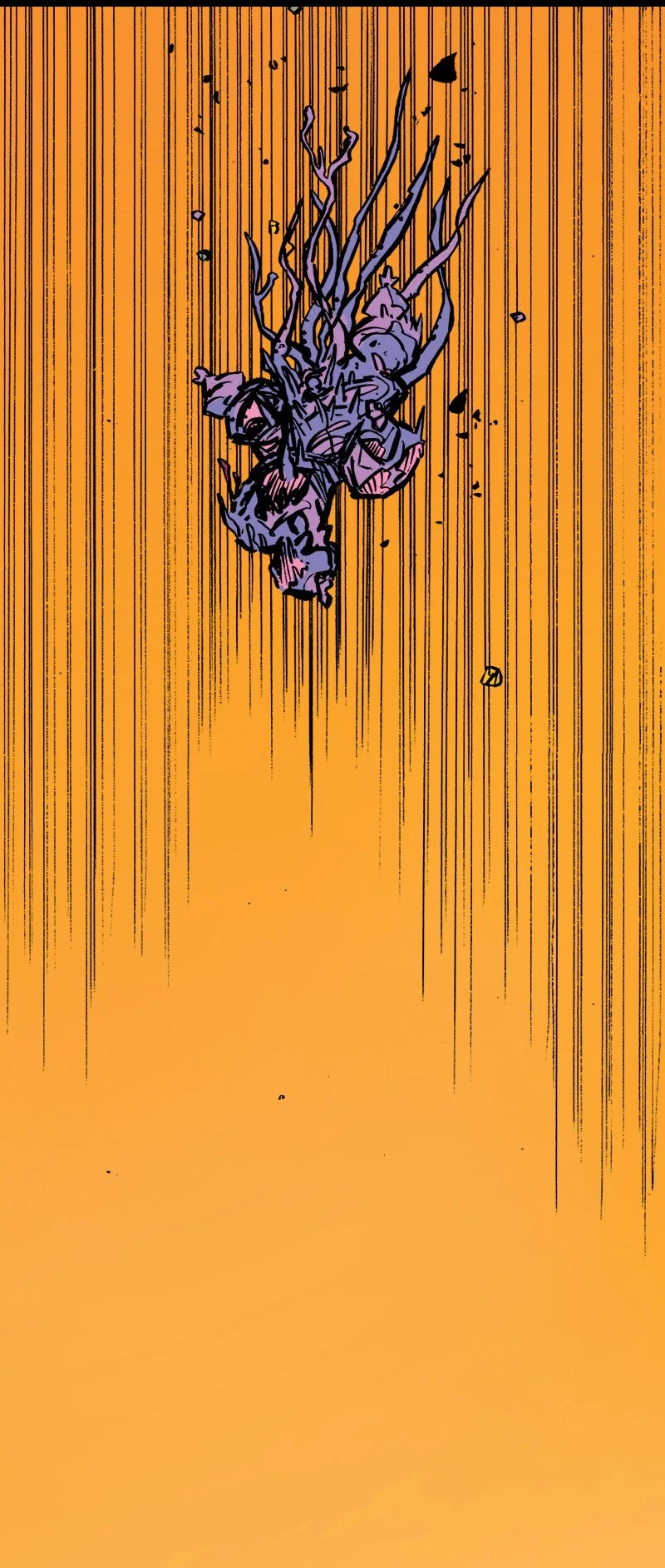 I was also excited for the format. Webtoon is an app designed specifically for reading comics on phones, so the flow is narrow and infinitely scrollable. Therefore, no double-page spreads, but you can control pacing with moments of quiet white space and by turning those “double page moments” into longer, vertical scenes impossible to replicate in printed form. I didn’t want to post traditional comic pages into the app and call it a day—I wanted to embrace the format to see what I could do with it. An example from this first episode is when the titan transforms midair and crash lands in front of Jack and his crew. In reality, that scene consisted of me taping three 11x17 inch boards together to make it possible. Truth be told, I worked way too large for this format and could have saved a ton of time by working at a more reasonable size, but like I said at the top, I wasn’t thinking—I was too busy moving as fast as humanly possible.