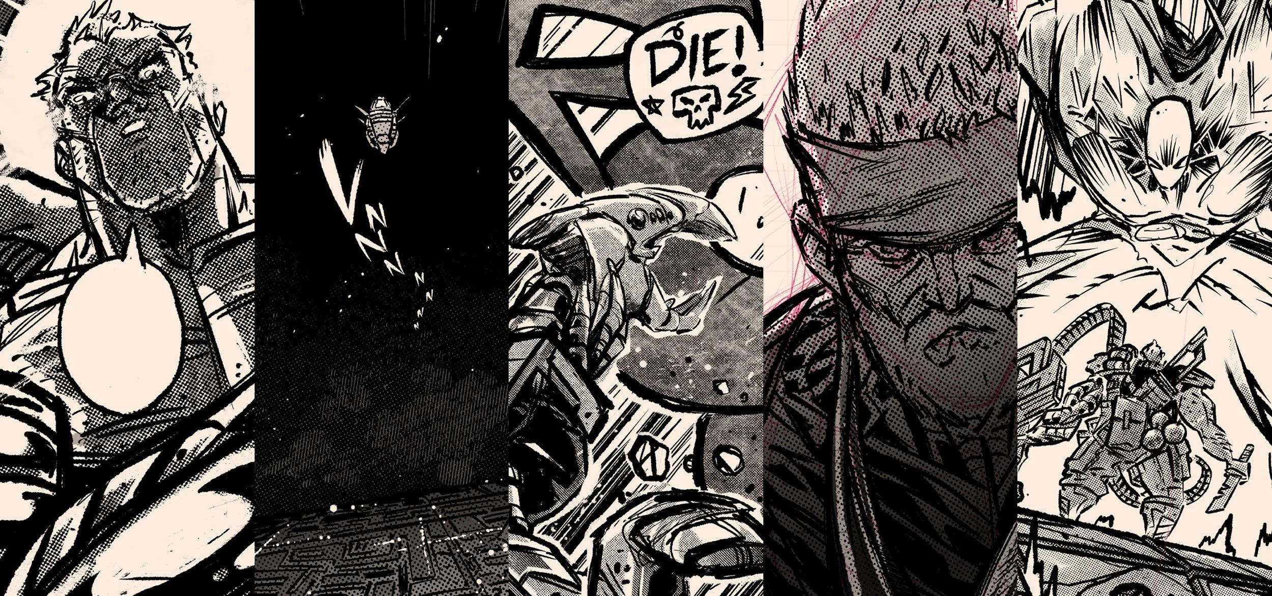 I needed my digital output to look like it was done manually. That was non-negotiable. I only use a handful of digital brushes for inking, another handful for coloring, and a few for tones, texture, etc. Making sure the line weights were consistent with their analogue counterparts was another point of emphasis.